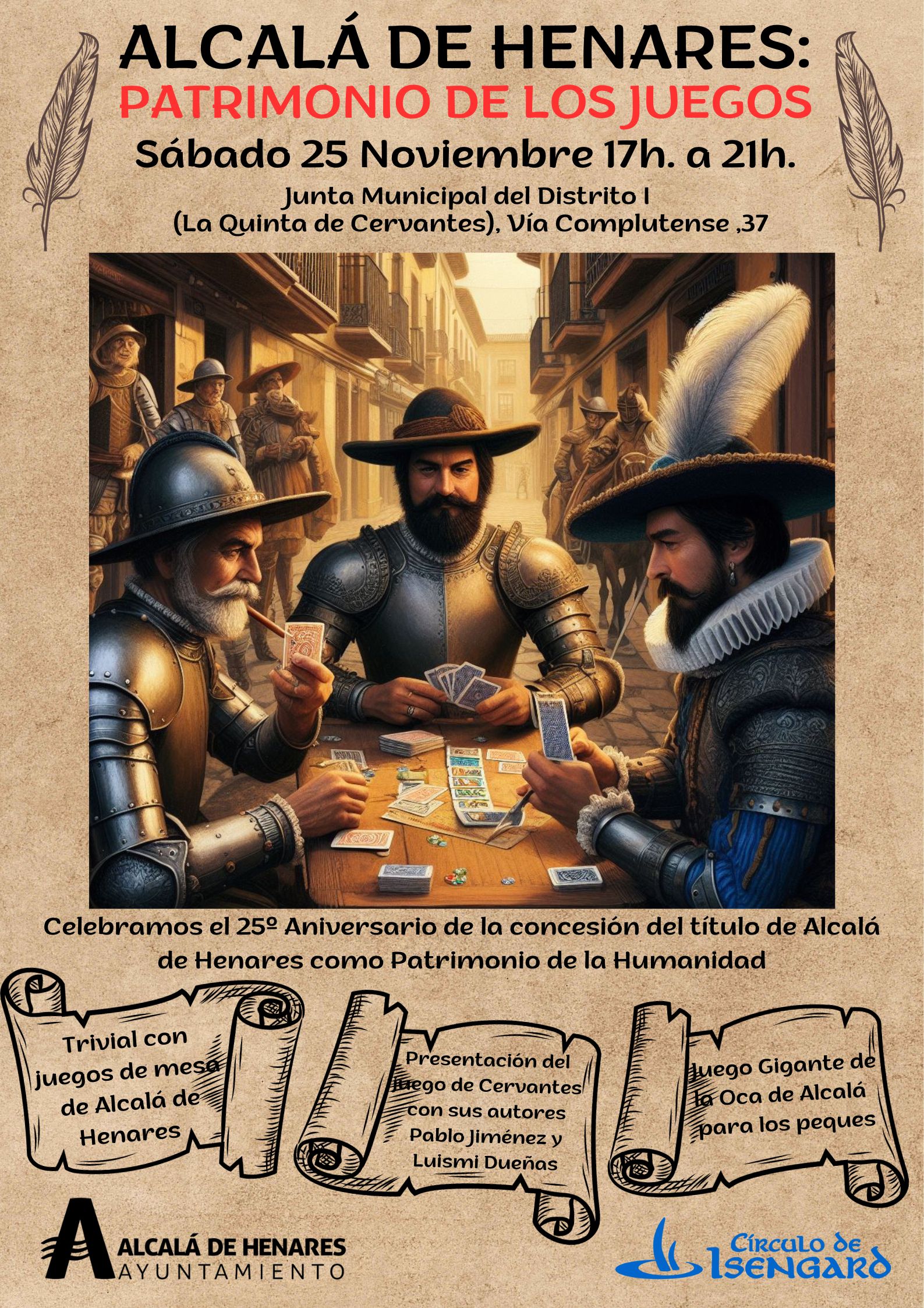 “Alcalá de Henares: Patrimonio de los juegos” será una jornada temática de juegos de mesa muy complutense, con una selección de juegos relacionados con el Patrimonio mundial de las artes, las letras y la arquitectura.