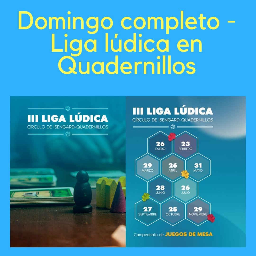 • Domingo completo: Para terminar, el plato fuerte de la semana. Nos vamos (como será costumbre a partir de ahora todos los meses) al Centro Comercial Quadernillos para llevar a cabo la segunda jornada de nuestra III Liga Lúdica).