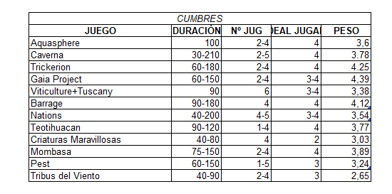 Esta lista puede variar en función del número total de participantes o por patrocinios. Del mismo modo, aquí os dejamos la lista de juegos que podrán aparecer en la partida en la cumbre y posteriormente se añadirán a la jornada posterior: